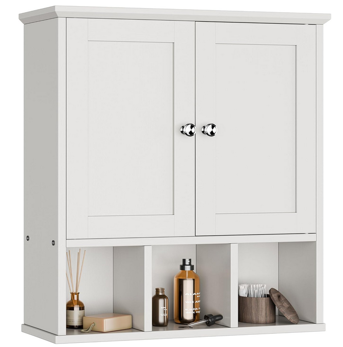 Bathroom Wall Cabinet, Bathroom Cabinet Wall Mount with 2 Doors and 3 Open Shelves, Over The Toilet Wood Medicine Cabinets, White
