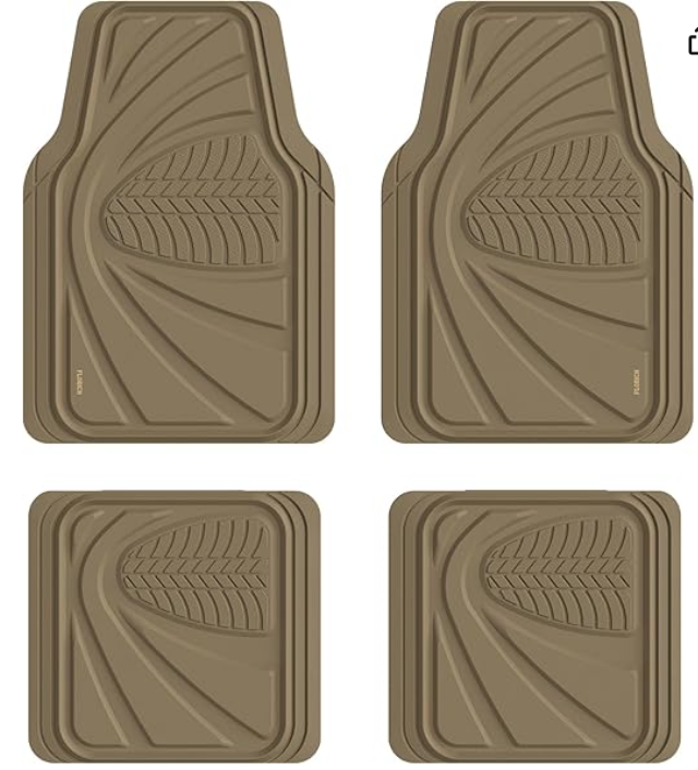 Car Floor Mats, Waterproof Universal Heavy-Duty 4 Pieces Rubber Floor Mats for Cars, Full Set Car Mats with Anti-Slip Backing Fit for Most SUV, Vans,Trucks, Sedan(Beige)