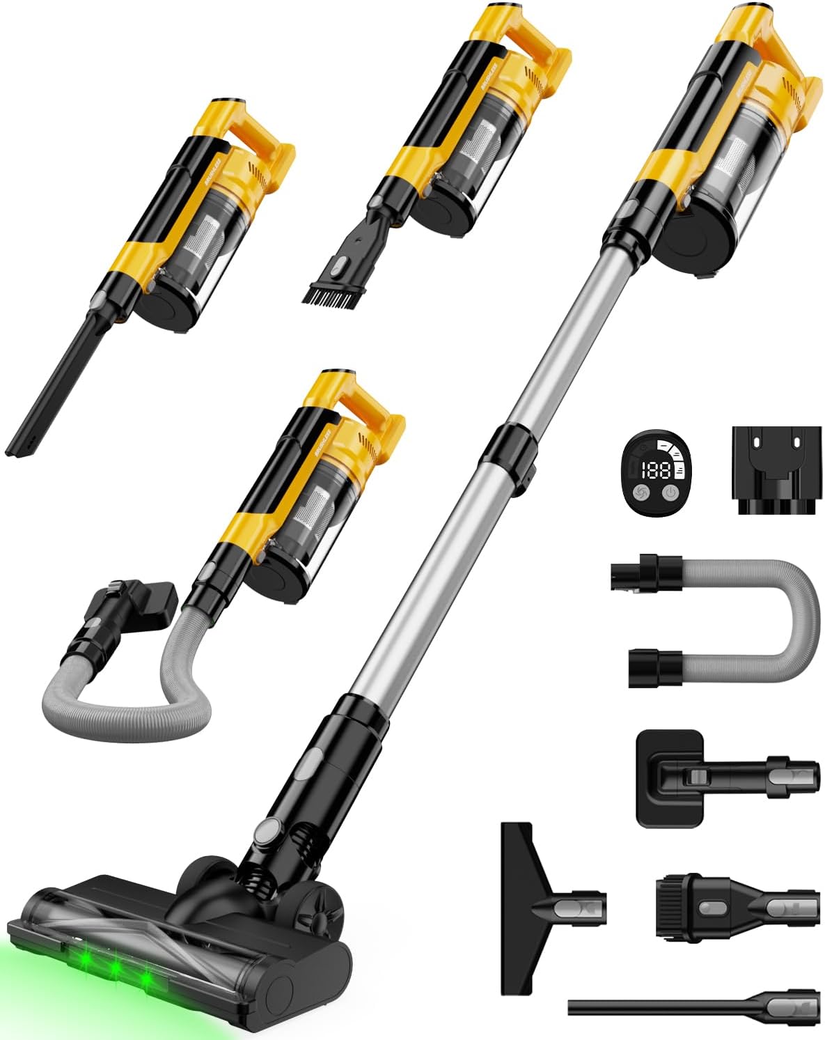 Cordless Vacuum Cleaner Compatible with DeWalt 20V Battery, 8-in-1 Stick Vacuum with Pet Brush, 35KPA Suction, 350W Brushless Motor, Smart Touchscreen, for Carpet Floor Car (Battery Not Included)