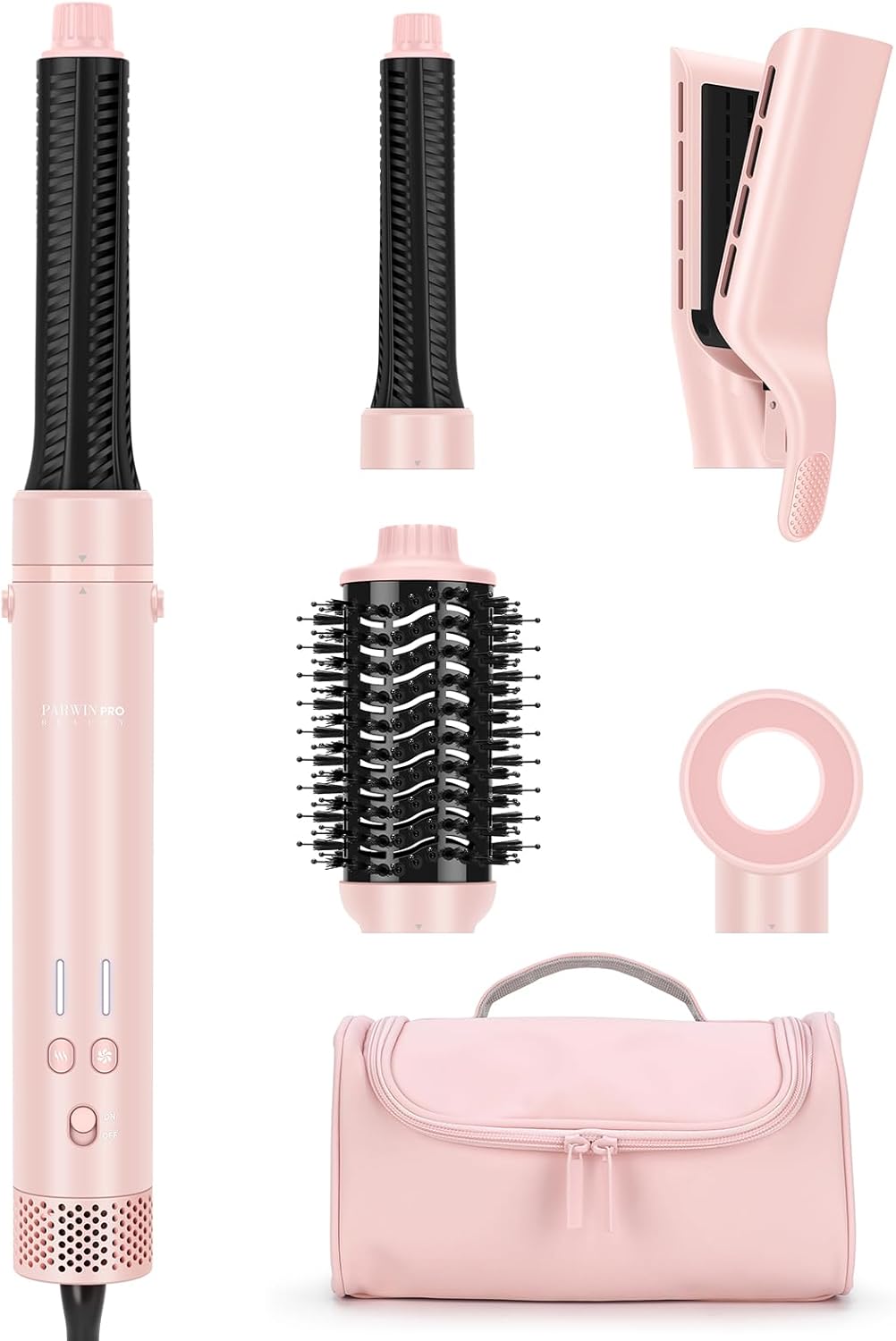 Dual Voltage 5 in 1 Hot Air Hair Styler – MaxAIR 2.0 Multi Styler with Auto Wrap Curlers, Air Straightener & Ionic Ceramic Hair Dryer Brush for Fast Drying, Volumizing, Curling, Straightening, Pink