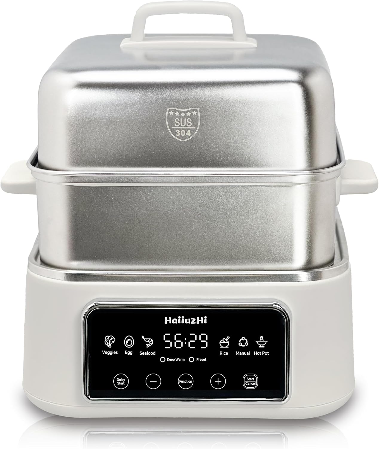 Experience the ultimate in healthy cooking with our Electric Food Steamer, featuring a generous 12.7 QT capacity and a versatile double-tier design. This 8-in-1 kitchen essential allows you to effortlessly prepare a variety of meals, from perfectly steamed vegetables to succulent fish and tender grains. Crafted from high-quality stainless steel, this steamer not only ensures durability but also provides a sleek and modern look that complements any kitchen decor. With its spacious design, you can cook multiple dishes simultaneously, saving you time and effort in meal preparation.