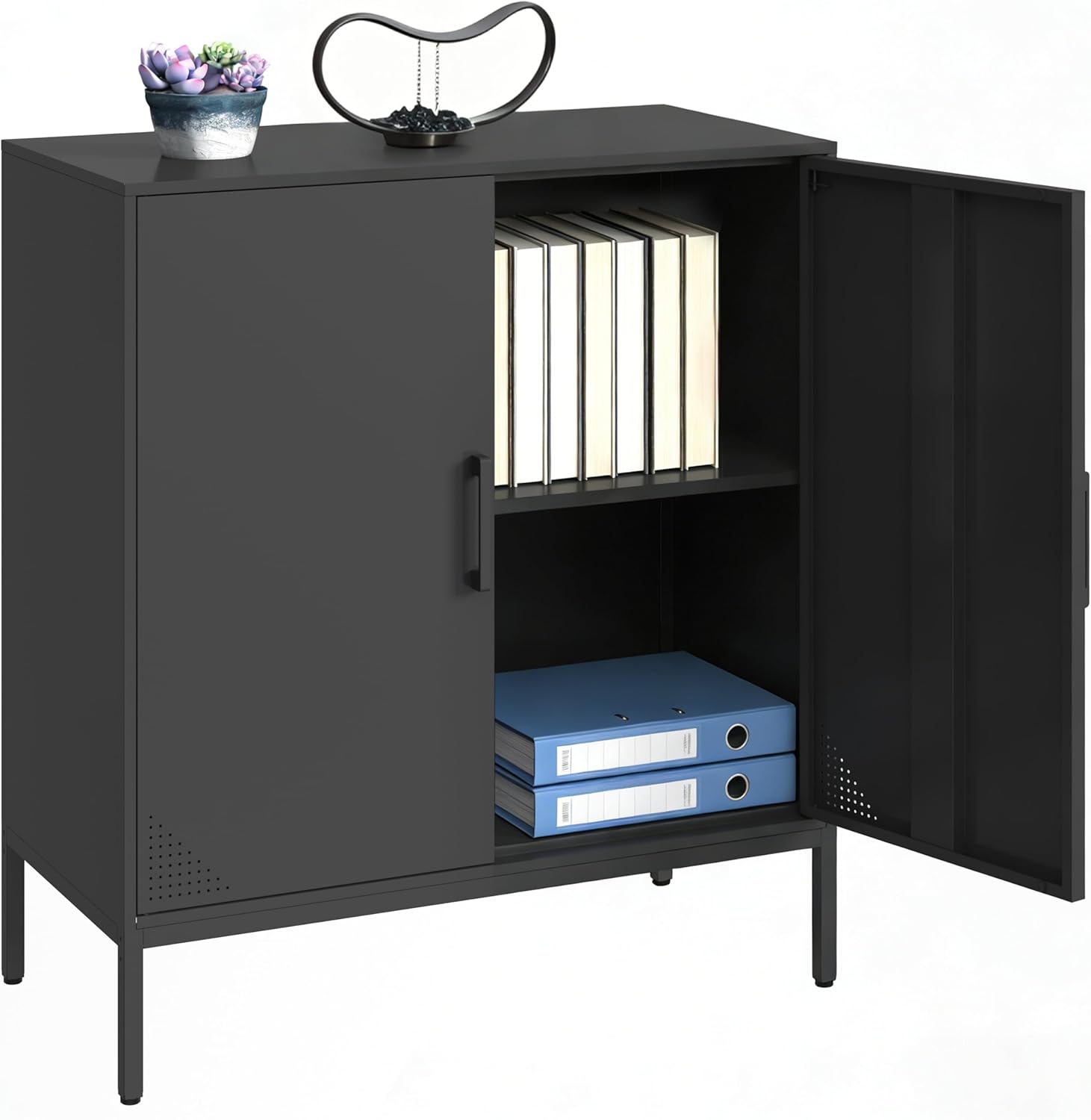 Metal Storage Cabinet with Adjustable Shelves, Steel Buffet Sideboard for Entryway, Living Room, Dining Room, Kitchen, Office, Bar (Black, 31.5″ D x 15.75″ W x 35.43″ H)